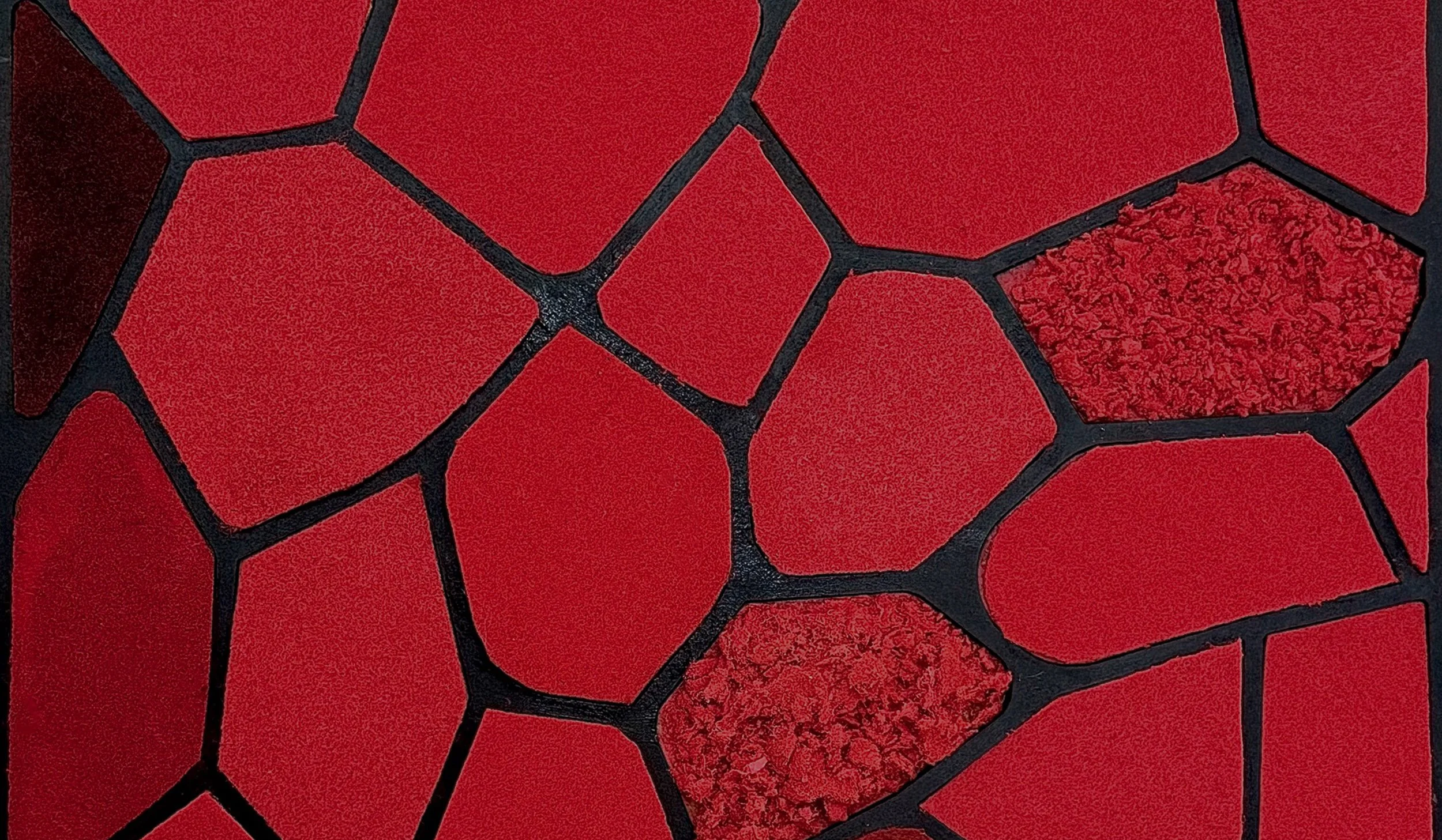 Vitrail contemporain, biomatériaux, morceaux de tapis rouge du festival de cannes édition 2024, cadre en bois